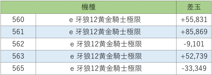 パチンココーナーからは最新台『牙狼12』560~565番台、5台中3台プラス差玉、勝率60.0%!差玉+80,000発オーバー!+50,000発オーバー2台と大爆発で超大量出玉を獲得していました!