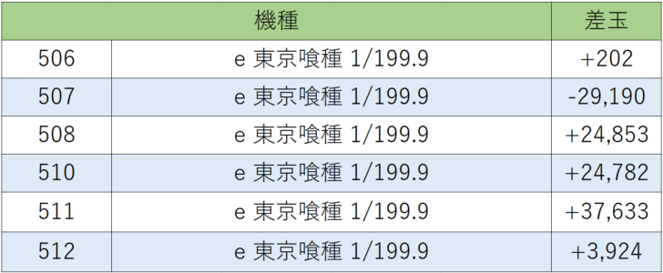 人気機種『東京喰種』からも差玉+20,000発オーバー、+30,000発オーバーと複数の台が大量出玉を獲得していました。